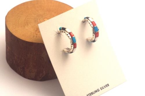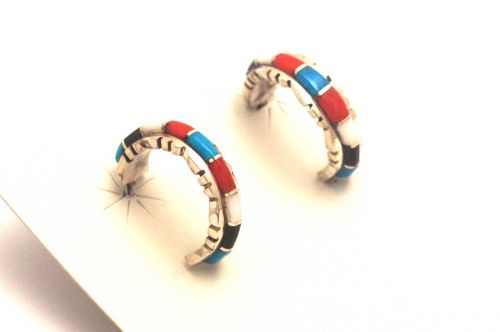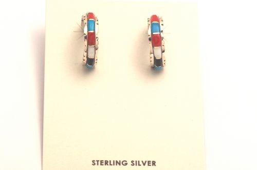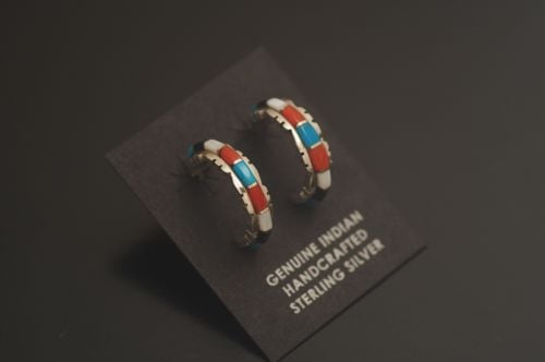ズニ・インレイピアス シェルドン・ラリオ作 《極細インレイ/マルチカラー》