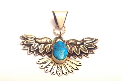 【POWWOWナゲッツ】 ナバホペンダント Derrick Cadman作 《サンダーバード/キングマン 》