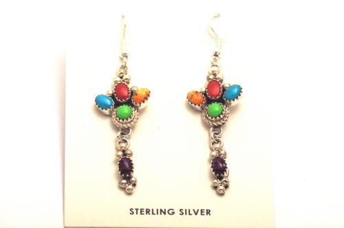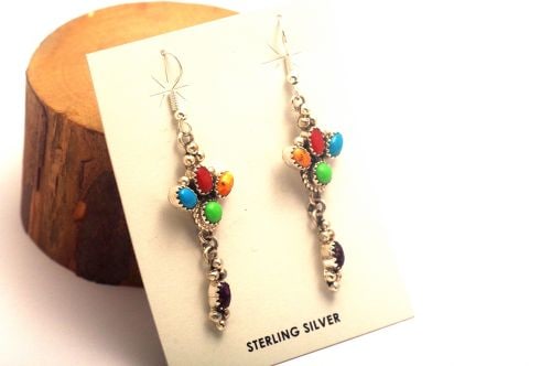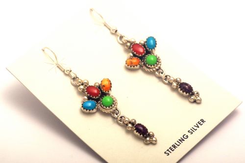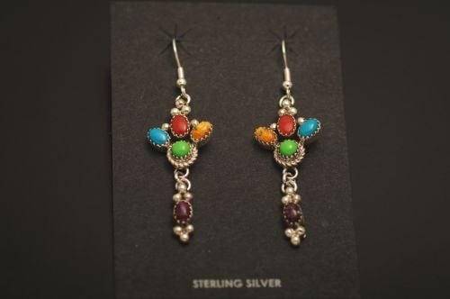 ナバホ・インレイピアス  Sally Yazzie 作 《マルチカラー》 クラスター