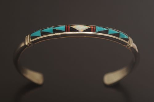 ズニ・インレイバングル Bailey Gia作 《オパール&ターコイズ/ヘビーゲージ》 内周16.2cm