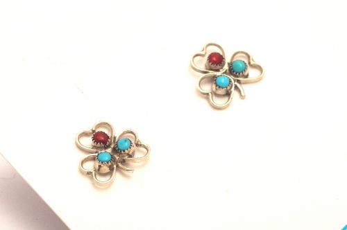 ズニピアス 《ハートクローバー/コーラル&ターコイズ》