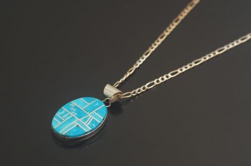 ナバホペンダント Eugene Chee作 《ターコイズ・インレイ》