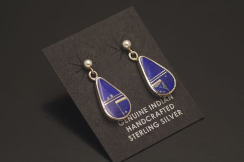 ナバホ・インレイピアス Calvin Begay作 《ラピスラズリ》