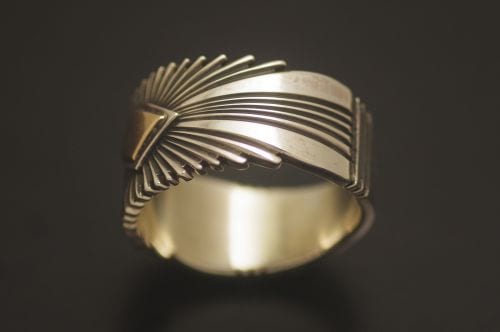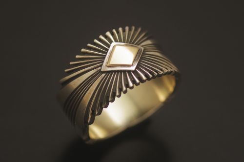 パットの正確無比なシルバーワークにゴールドが映える最新リングです