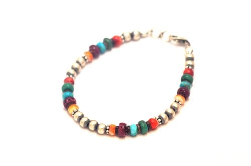 ナバホブレスレット 《キッズ用/ナバホパール+マルチカラービーズ/つや消し 》 13.5cm