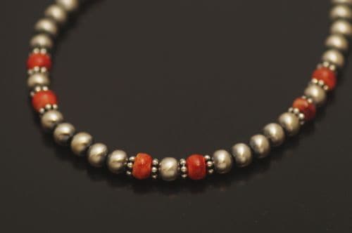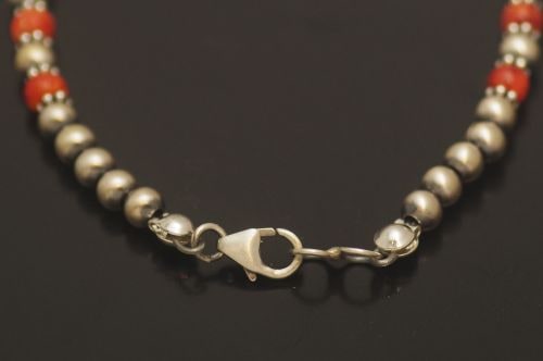 ナバホブレスレット 《ナバホパール+スパイニーオイスタービーズ/つや消し 》 15.0cm