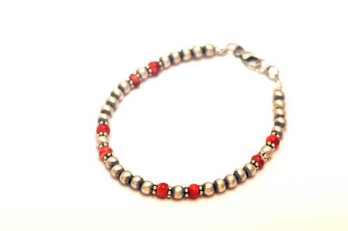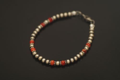 【ナバホパール】と【スパイニーオイスタービーズ】を組み合わせたブレスレットです