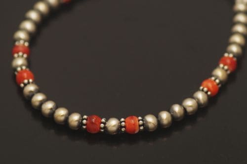 ナバホブレスレット 《ナバホパール+スパイニーオイスタービーズ/つや消し 》 15.5cm