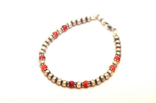 【ナバホパール】と【スパイニーオイスタービーズ】を組み合わせたブレスレットです