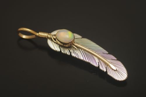 圧倒的な透明感と、オパールが持つ上品な光沢がハーヴィーのフェザーと調和した最新作です